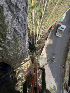 そのため、ロープワークと手作業による特殊伐採で、安全性を最優先に作業を行いました。